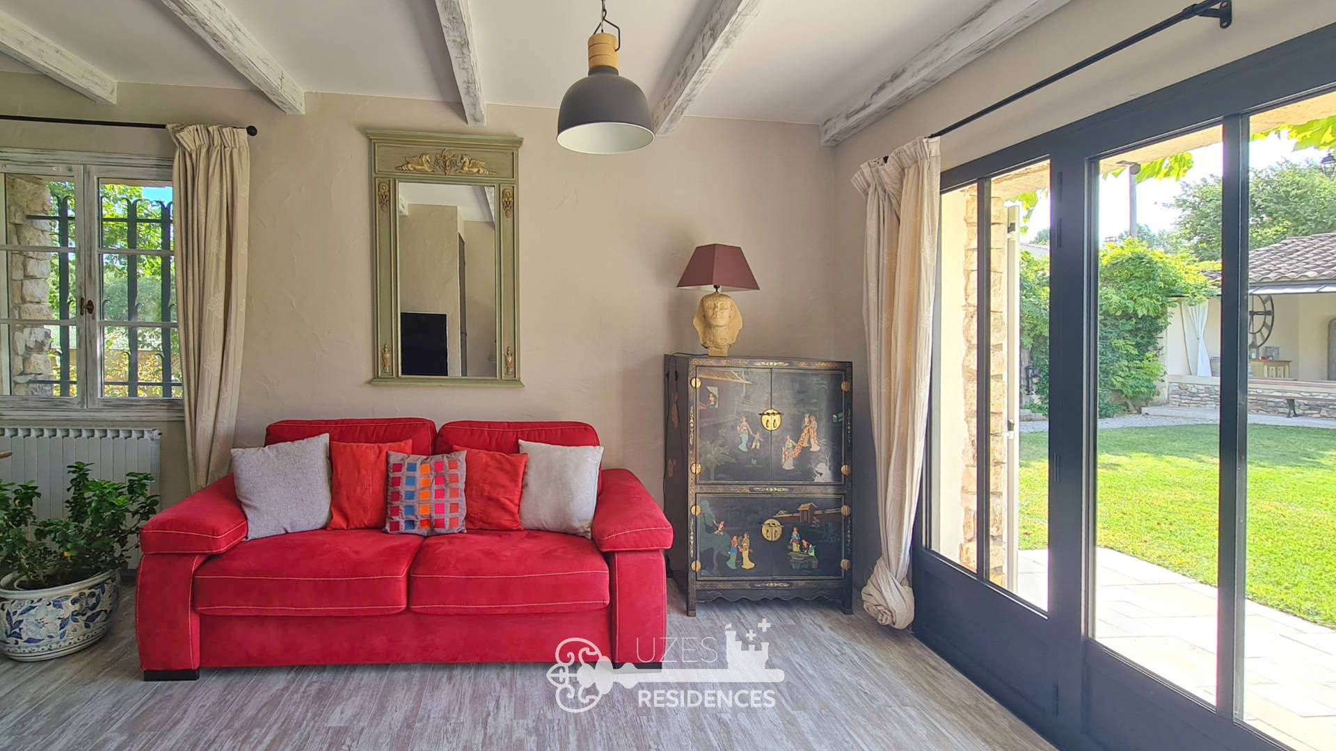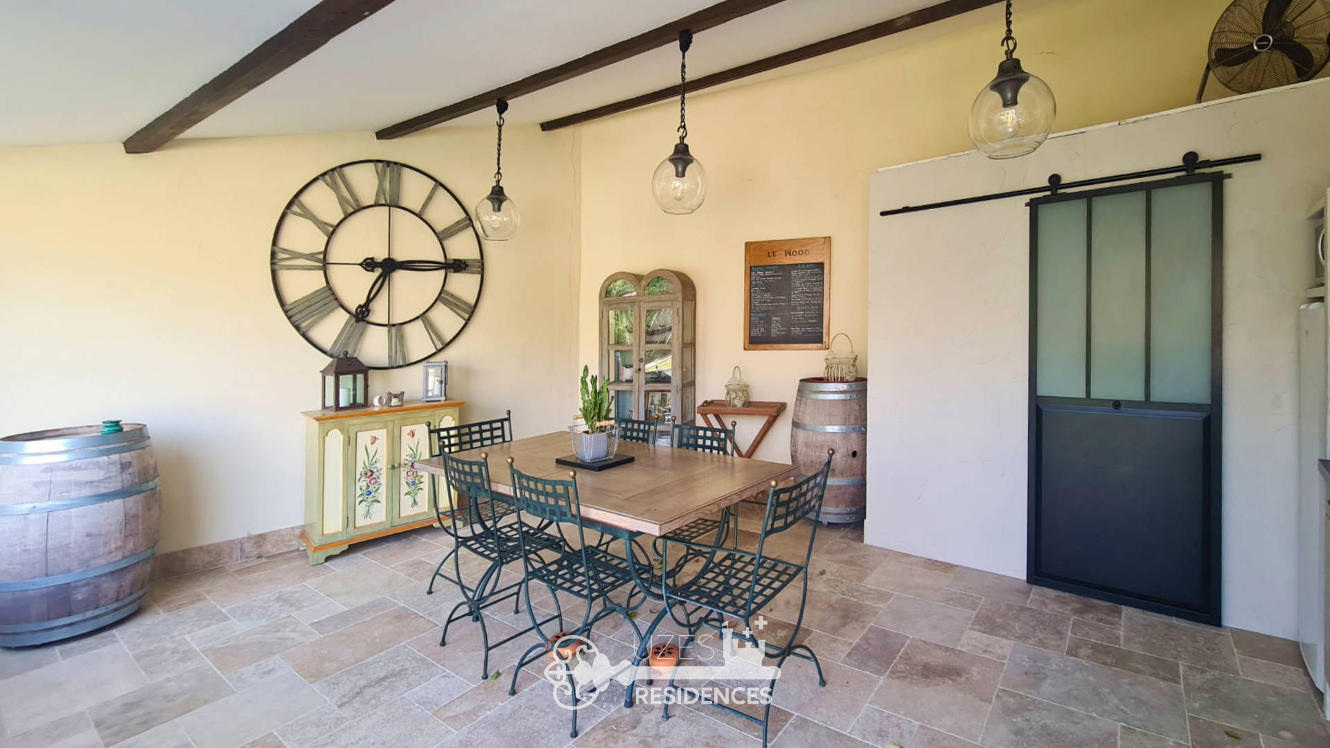 À seulement 10 minutes d’Uzès et 3 minutes des commerces de Saint-Quentin-la-Poterie, cette superbe bergerie de caractère, principalement de plain-pied, séduit par ses éléments de caractère, ses volumes généreux et la qualité de ses prestations. La maison s’organise autour d’un vaste séjour de 50 m2, comprenant un salon, une salle à manger et un espace salon TV, offrant une atmosphère chaleureuse sublimée par des poutres apparentes, murs en pierres et sols en terres cuites. La cuisine entièrement équipée, fonctionnelle et conviviale, s’intègre harmonieusement à l’ensemble. L’espace nuit du rez-de-chaussée dispose de trois chambres confortables, d’une salle de jeux avec wc/lave-mains pouvant également faire office de chambre d’amis, d’une salle d’eau, d’une salle de bain, ainsi que d’une buanderie chaufferie bien aménagée. À l’étage, vous trouverez une chambre supplémentaire avec sa salle d’eau privative, ainsi qu’un grenier, idéal pour le stockage. Implantée sur un magnifique terrain paysagé de 1 600 m2, la propriété offre un cadre extérieur soigné et propice à la détente. Vous profiterez d’une piscine au sel avec abri, d’une terrasse ombragée par une élégante tonnelle, et d’une cuisine d’été de 30 m2, parfaite pour recevoir en toute convivialité. Un garage fermé ainsi qu’un abri voiture complètent les prestations. Côté confort et équipements : chauffage central au gaz propane, climatisations réversibles, poêle à bois, alarme, portail automatique et moustiquaires. L’ensemble bénéficie d’un excellent entretien et de prestations de qualité, alliant charme des élements anciens et confort moderne. Une propriété rare, idéale en résidence principale comme en maison de vacances, dans un environnement calme et recherché.