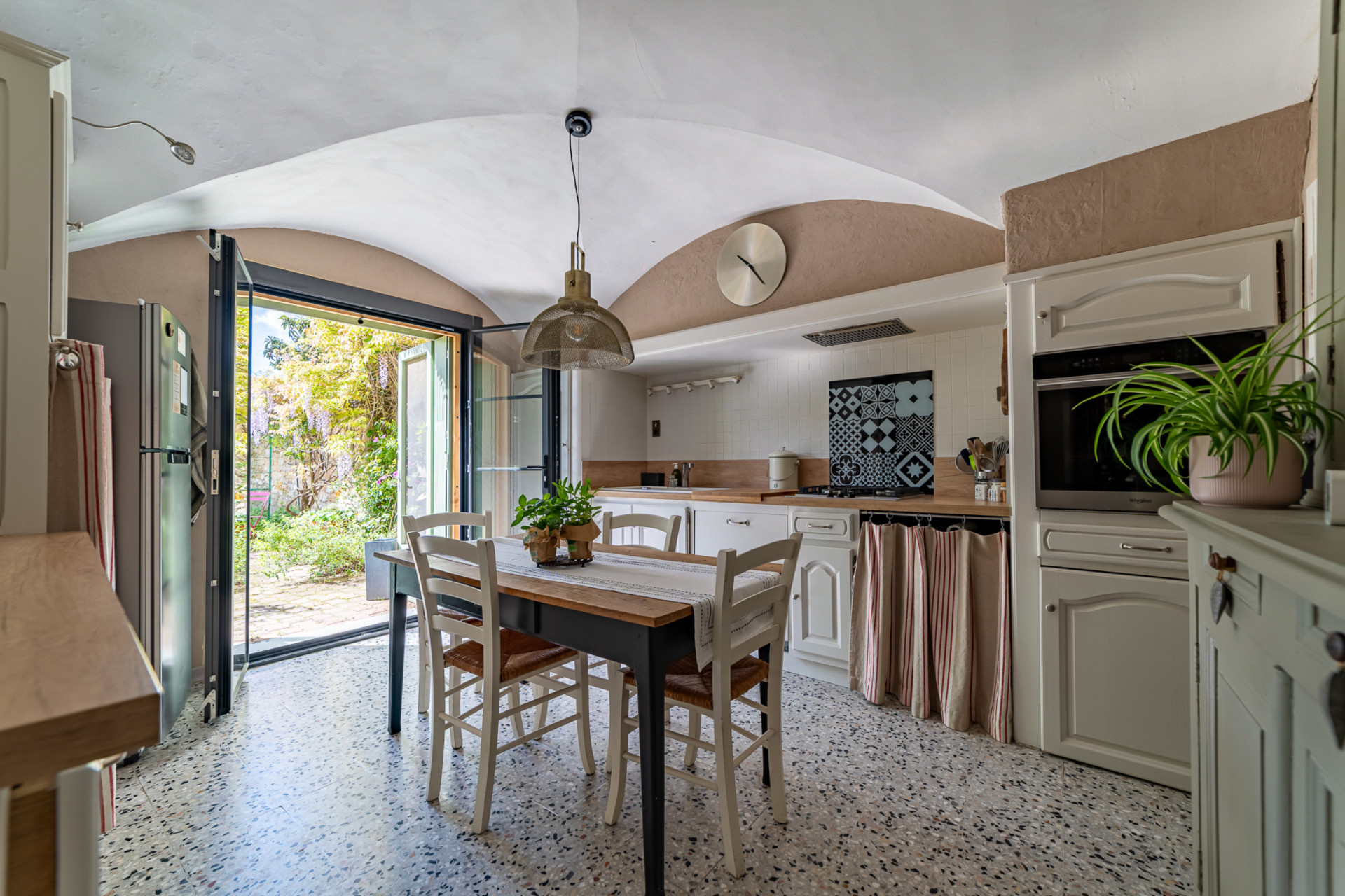 The Uzes Residences real estate agency presents this superb stone house, entirely renovated with taste, combining the character of the old with modern comfort. On the ground floor, you will enjoy a fully equipped kitchen opening onto the garden, a convivial dining room and a bright living room facing south, offering a warm living environment bathed in light. An additional room of approximately 23 m2 remains to be fitted out according to your desires (office, bedroom, games room, etc.). Upstairs, the master suite of 21 m2 with private bathroom will seduce you with its space and comfort. Two bedrooms of 13 and 15 m2, a bathroom, as well as a fourth attic bedroom of 19 m2 on the ground floor with a dressing room of 3.5 m2 complete the sleeping area. The house will be sold with a large part of the furniture, allowing you to move in immediately. In the annex, a large garage of approximately 45 m2 offers numerous possibilities for storage or development. Located in a building zone on the edge of the village, the property benefits from great potential for expansion and also allows for the installation of a swimming pool. The living rooms, with magnificent ribbed vaults, offer an authentic charm and a unique atmosphere. The south-facing garden, decorated with large trees, guarantees shade and freshness on summer days. A rare property, ideal for a family looking for space, character and potential for development. For more information, contact Uzes Residences Immobilier at +33(4) 66 37 47 99 or