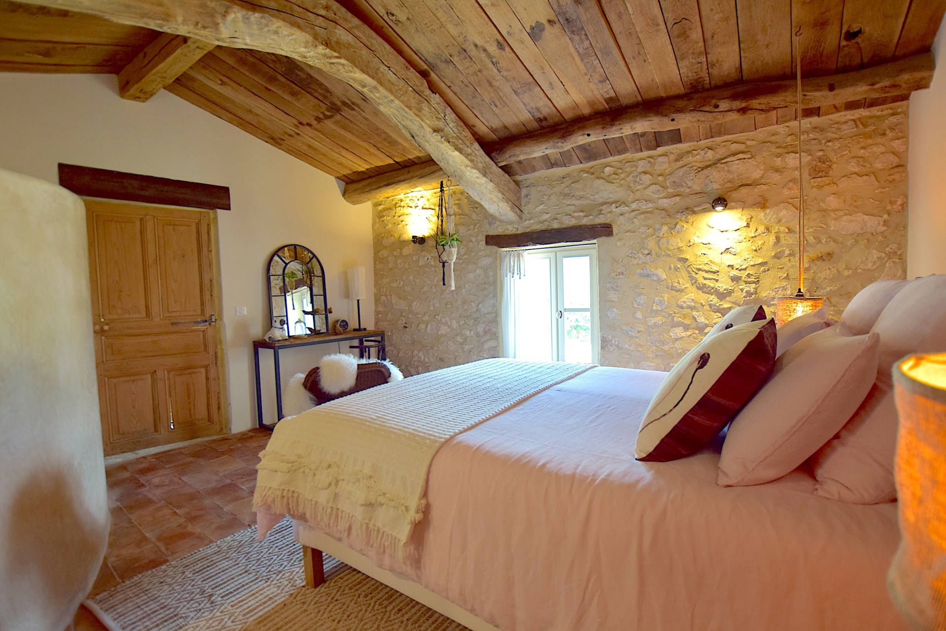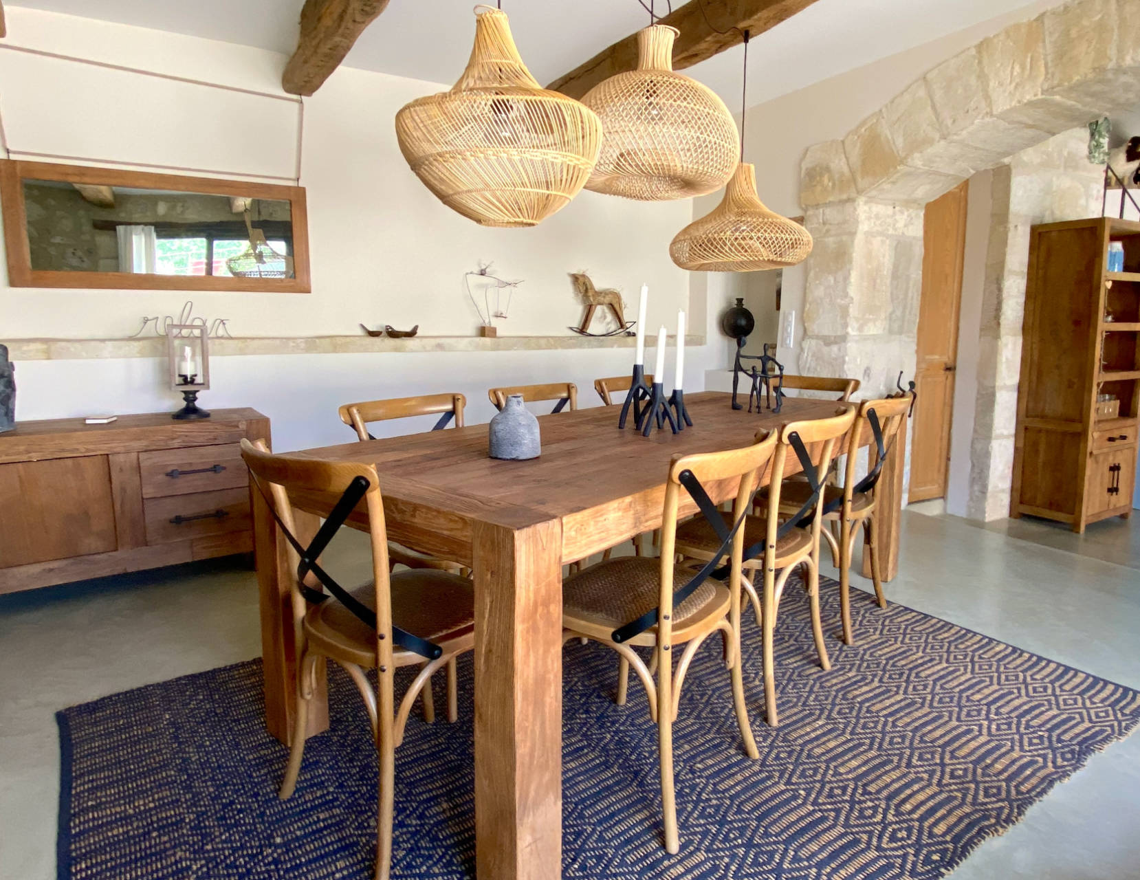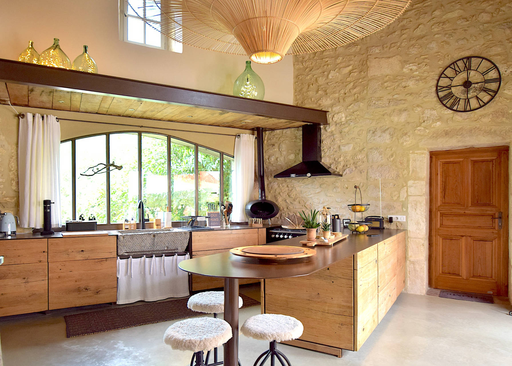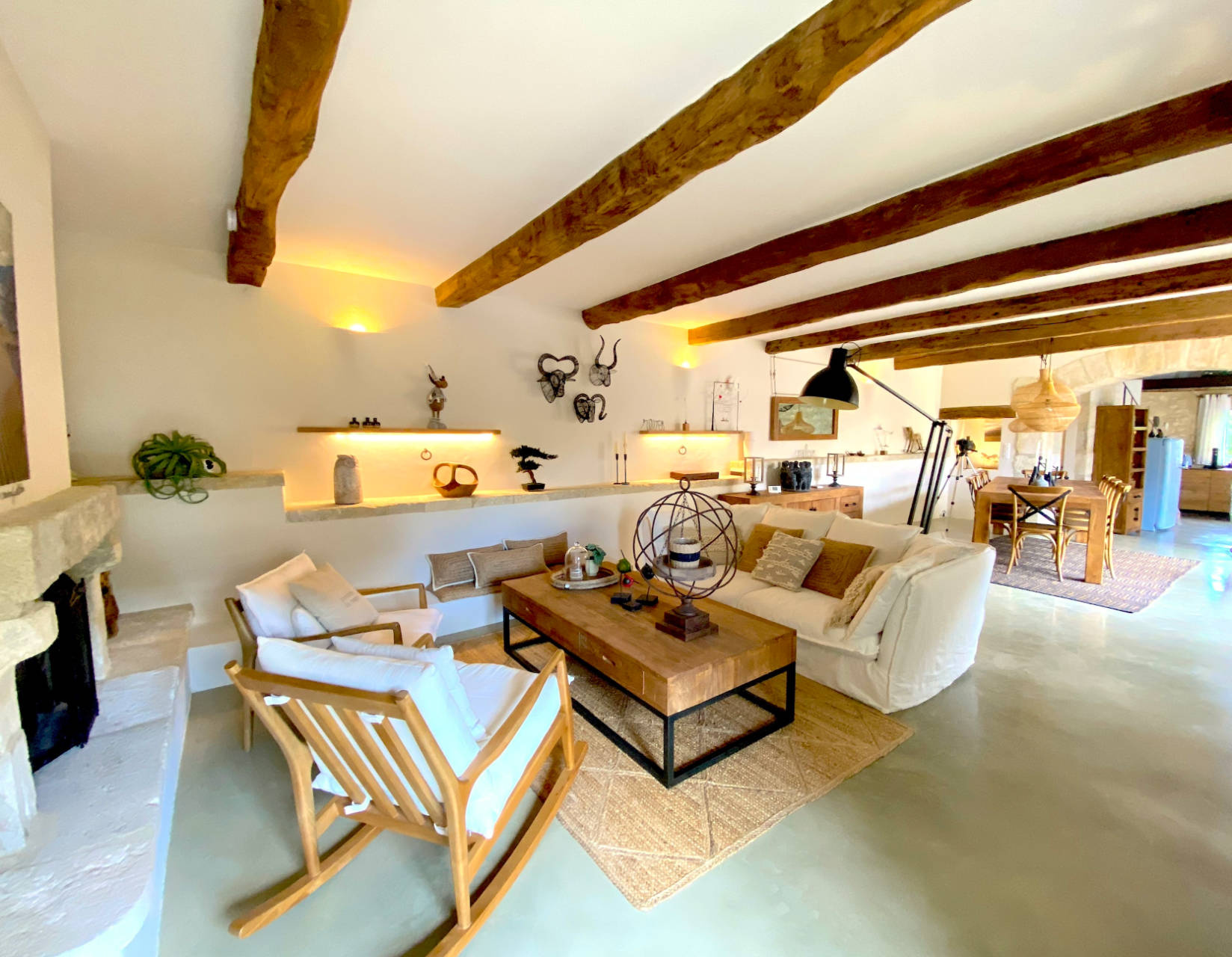 Surrounded by orchards, vineyards and lavender fields, in an idyllic hamlet 25 km from Uzès, among the green hills of the Cèze valley, this old stone house has been superbly renovated. The use of noble reclaimed materials such as oak beams and old terracotta tiles, combined with polished concrete floors and beautiful ironwork, has transformed it into a superb family home. The 82 m2 living room offers an incredible feeling of space and light, with a fireplace on one side and a fitted kitchen on the other. Its cathedral ceiling, dressed in reclaimed woodwork, further reinforces the impression of volume. With a total of four magnificent bedrooms, each with its own private bathroom and all worked with terracotta, woodwork and tadelak, the night space reflects a harmony of colors and materials conducive to calm and serenity. In terms of the exteriors, the garden has been designed for minimum maintenance and is complemented by terraces sheltered by suspended sails. Opposite the house, the swimming pool has been cleverly positioned overhanging, thus dominating the surrounding countryside. Created from an old outbuilding, this space benefits from a beautiful summer kitchen with dining room... This gem awaits you, turnkey, with all the necessary furniture and equipment, ready to welcome you for the beautiful days of summer. THIS PROPERTY IS UNDER CONTRACT.