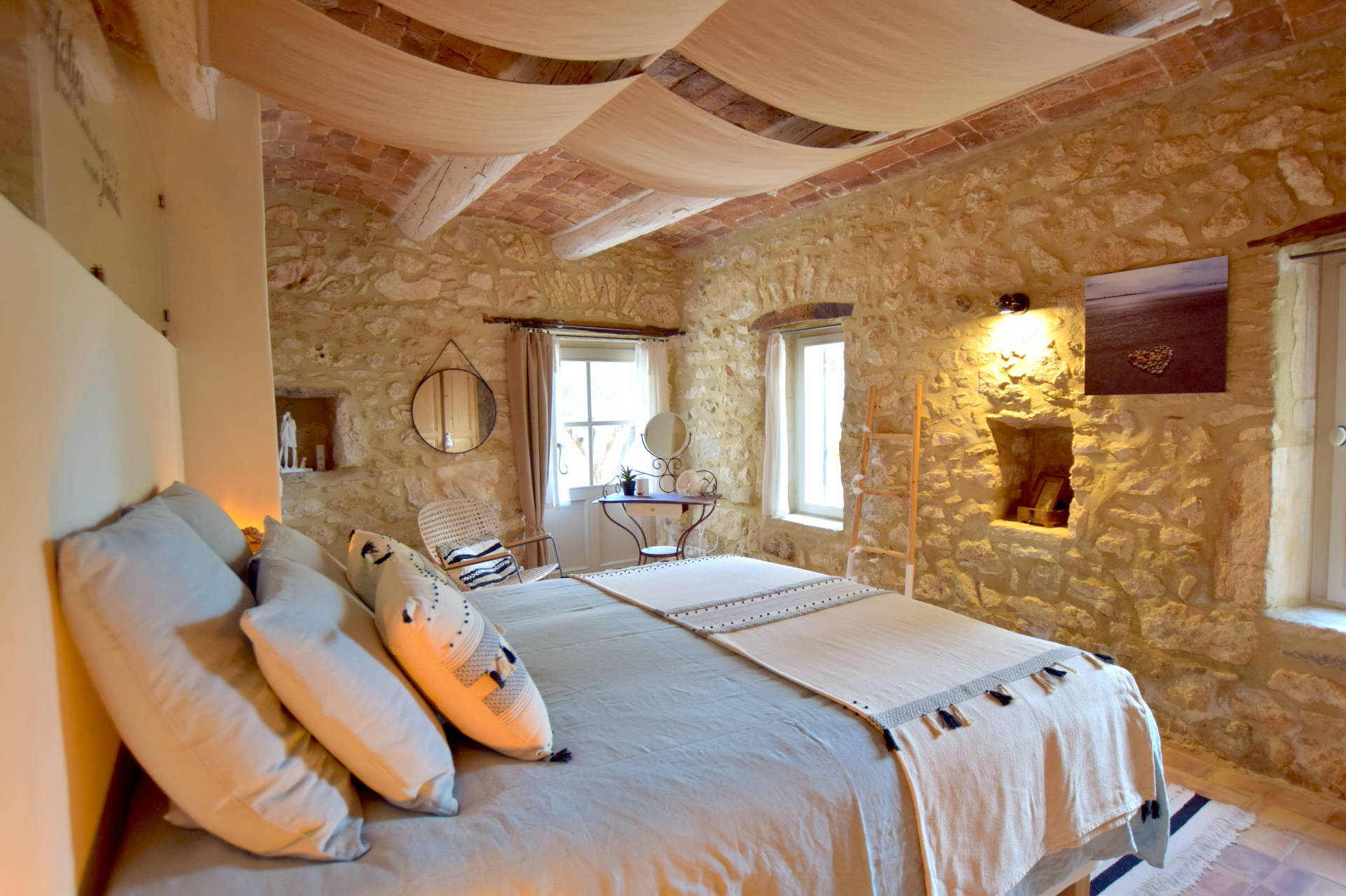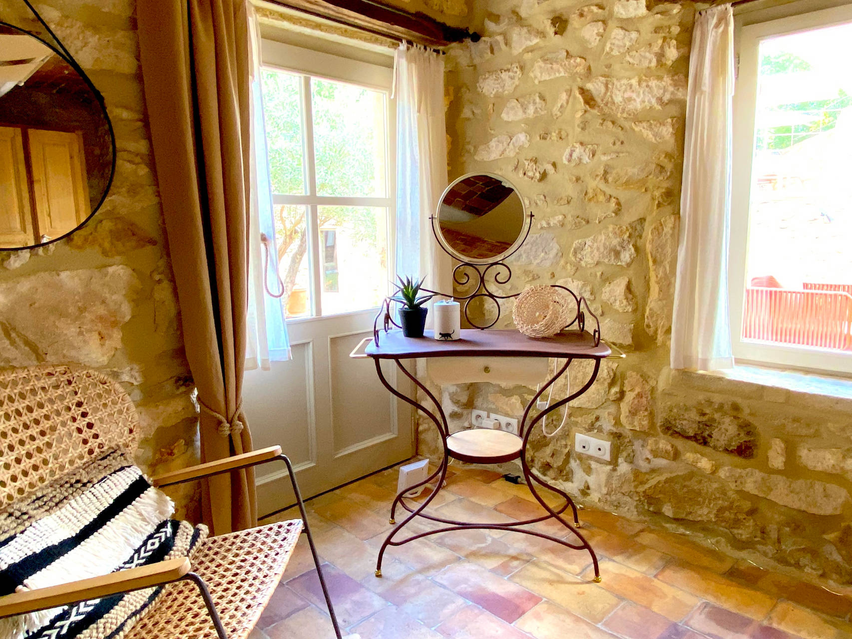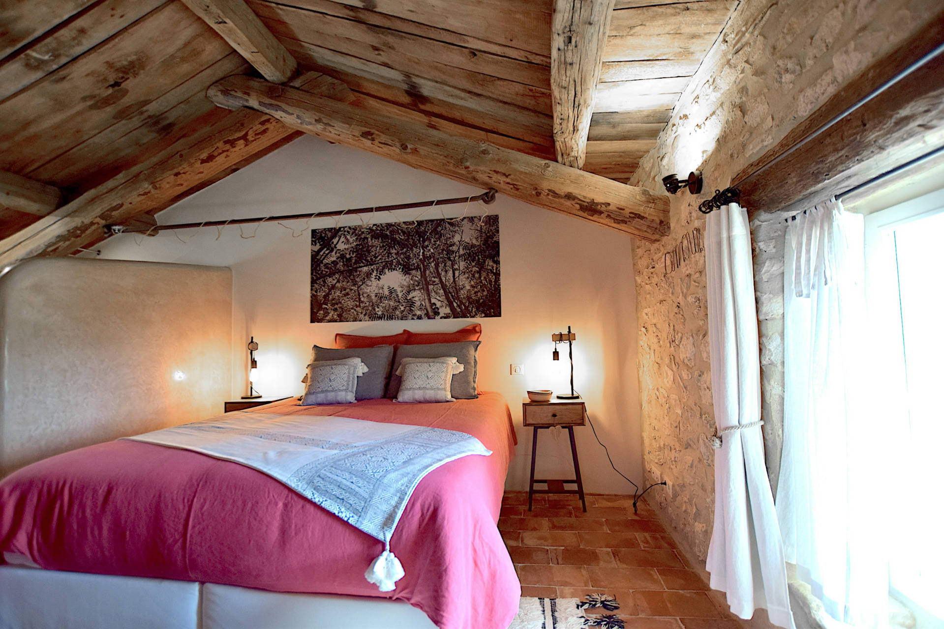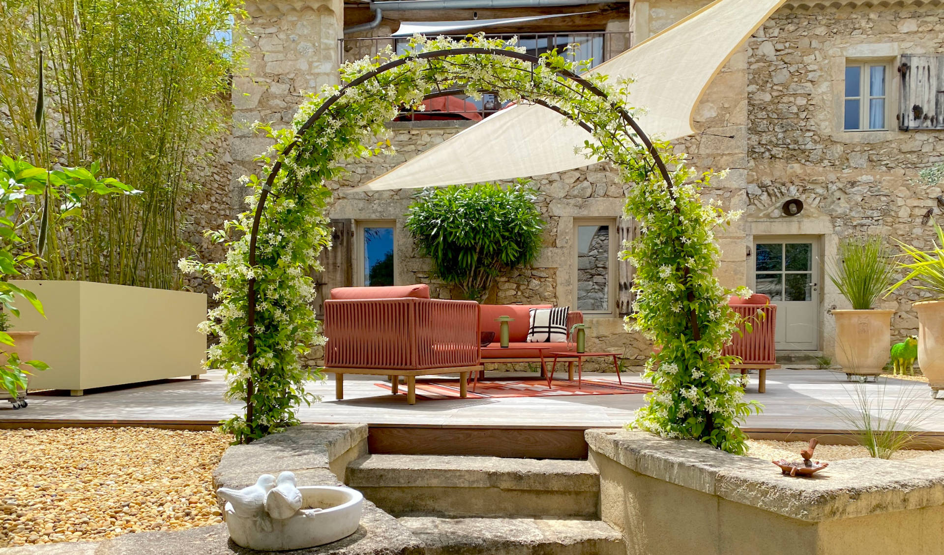 Surrounded by orchards, vineyards and lavender fields, in an idyllic hamlet 25 km from Uzès, among the green hills of the Cèze valley, this old stone house has been superbly renovated. The use of noble reclaimed materials such as oak beams and old terracotta tiles, combined with polished concrete floors and beautiful ironwork, has transformed it into a superb family home. The 82 m2 living room offers an incredible feeling of space and light, with a fireplace on one side and a fitted kitchen on the other. Its cathedral ceiling, dressed in reclaimed woodwork, further reinforces the impression of volume. With a total of four magnificent bedrooms, each with its own private bathroom and all worked with terracotta, woodwork and tadelak, the night space reflects a harmony of colors and materials conducive to calm and serenity. In terms of the exteriors, the garden has been designed for minimum maintenance and is complemented by terraces sheltered by suspended sails. Opposite the house, the swimming pool has been cleverly positioned overhanging, thus dominating the surrounding countryside. Created from an old outbuilding, this space benefits from a beautiful summer kitchen with dining room... This gem awaits you, turnkey, with all the necessary furniture and equipment, ready to welcome you for the beautiful days of summer. THIS PROPERTY IS UNDER CONTRACT.