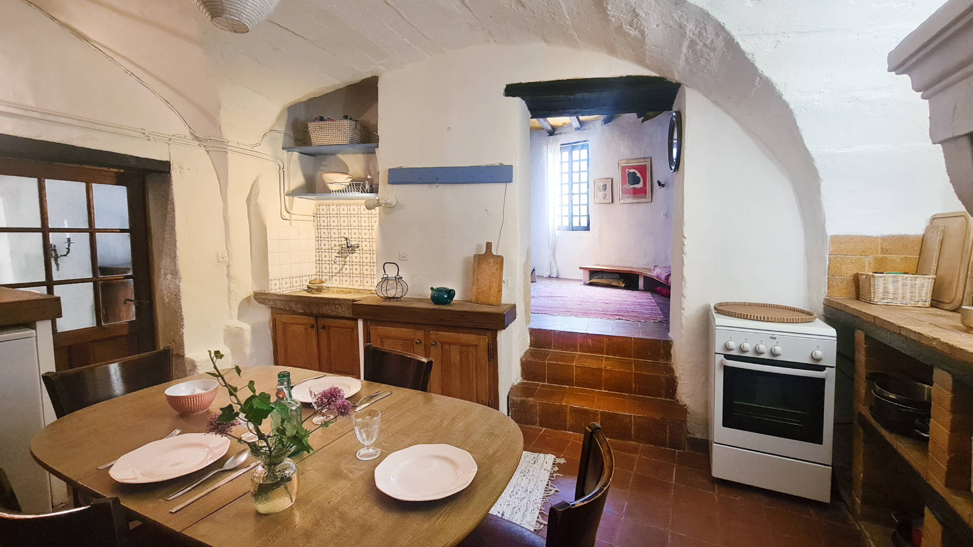 Located in the heart of the lively village of Blauzac, between Uzès and Nimes, this old house charms with its authenticity and characterful features: vaulted ceilings, exposed beams, a stone fireplace, and terracotta or stone floors. The entrance leads directly into a beautiful living room with a cathedral ceiling and opening onto an interior patio, a true haven of freshness. An antique-style eat-in kitchen with a stone sink and a large fireplace leads to a more intimate TV lounge. From this room, access to a storage room also accessible from the street—ideal for parking bikes or storing equipment. A staircase leads upstairs where you'll find a first attic bedroom, then a beautiful master bedroom with a dressing room, bathroom, and access to a pleasant roof terrace. An attic mezzanine provides an extra bed. An attic adjoins the terrace and provides storage space for outdoor furniture. From the patio, a separate area houses a shower room, a laundry room, and upstairs, a third bedroom—perfect for hosting family or friends independently. A characterful house with old-fashioned charm, in need of updating: the roofs were redone in 2016 and 2025, but work is required (electricity, heating, wall treatment). A rare property, with authentic character, for lovers of old stones and renovation projects in a peaceful living environment.