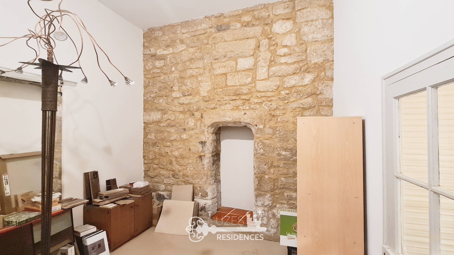 The Uzes Residences real estate agency offers this 31 sq m apartment located on the ground floor of a small, older building, ideally situated in the heart of Uzès. Overlooking a small courtyard, quiet and private, it comprises two main rooms: one with an en-suite shower room/WC and a living room with space for a kitchen. High ceilings give the apartment a spacious feel. Recent renovations include stone-effect porcelain tile flooring, ceiling insulation, and double-glazed windows. Some original features, such as a niche, exposed stone wall, and beams, have been preserved. These renovations will need to be complemented by modernization work, particularly in the shower room. The shower room includes a shower, WC, washbasin, and electric water heater. Heating is provided by electric radiant panels. A second, independent entrance makes this property perfectly suited for a professional activity. For more information, contact Cathy Matera - Uzes Residences real estate at