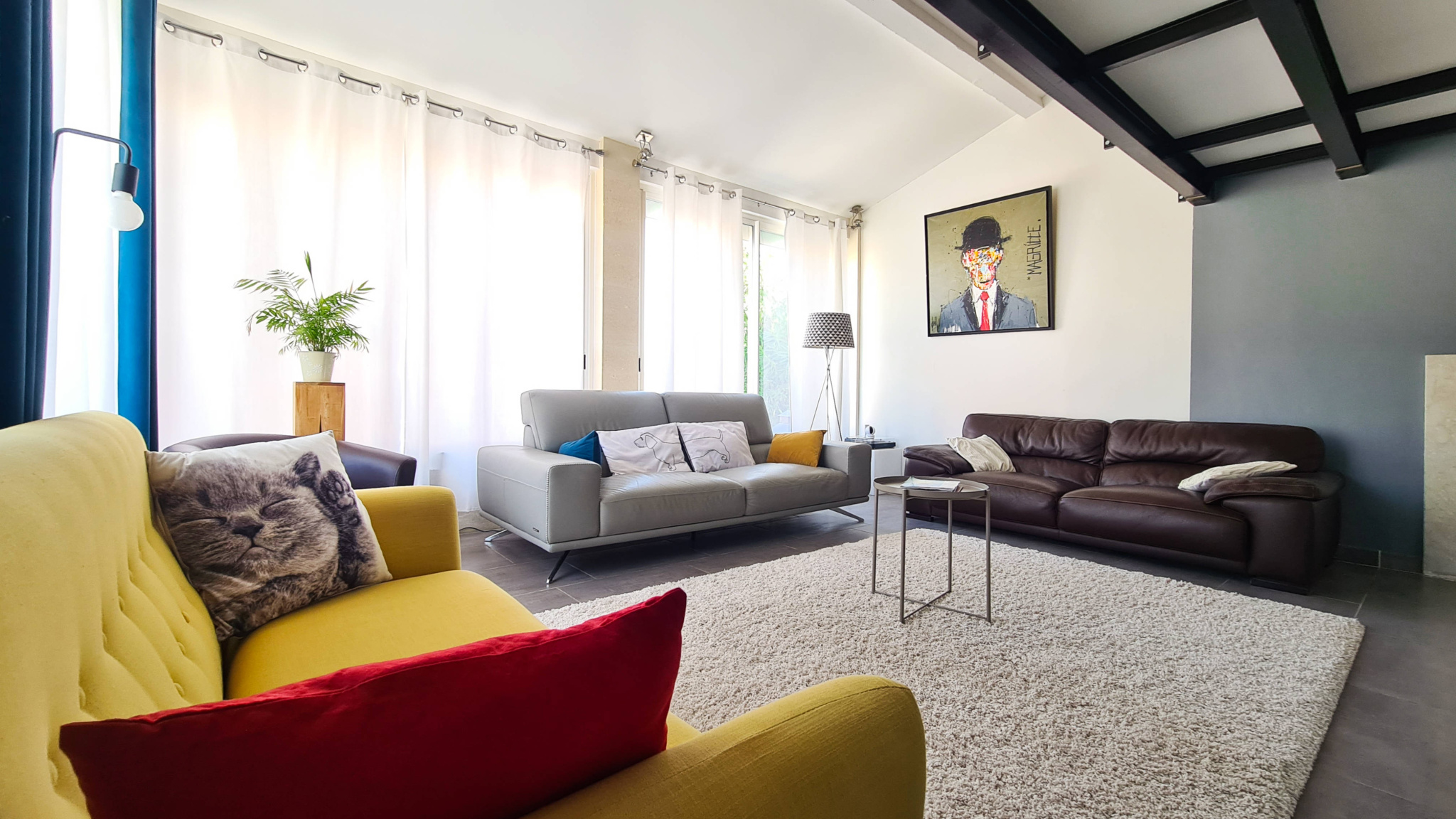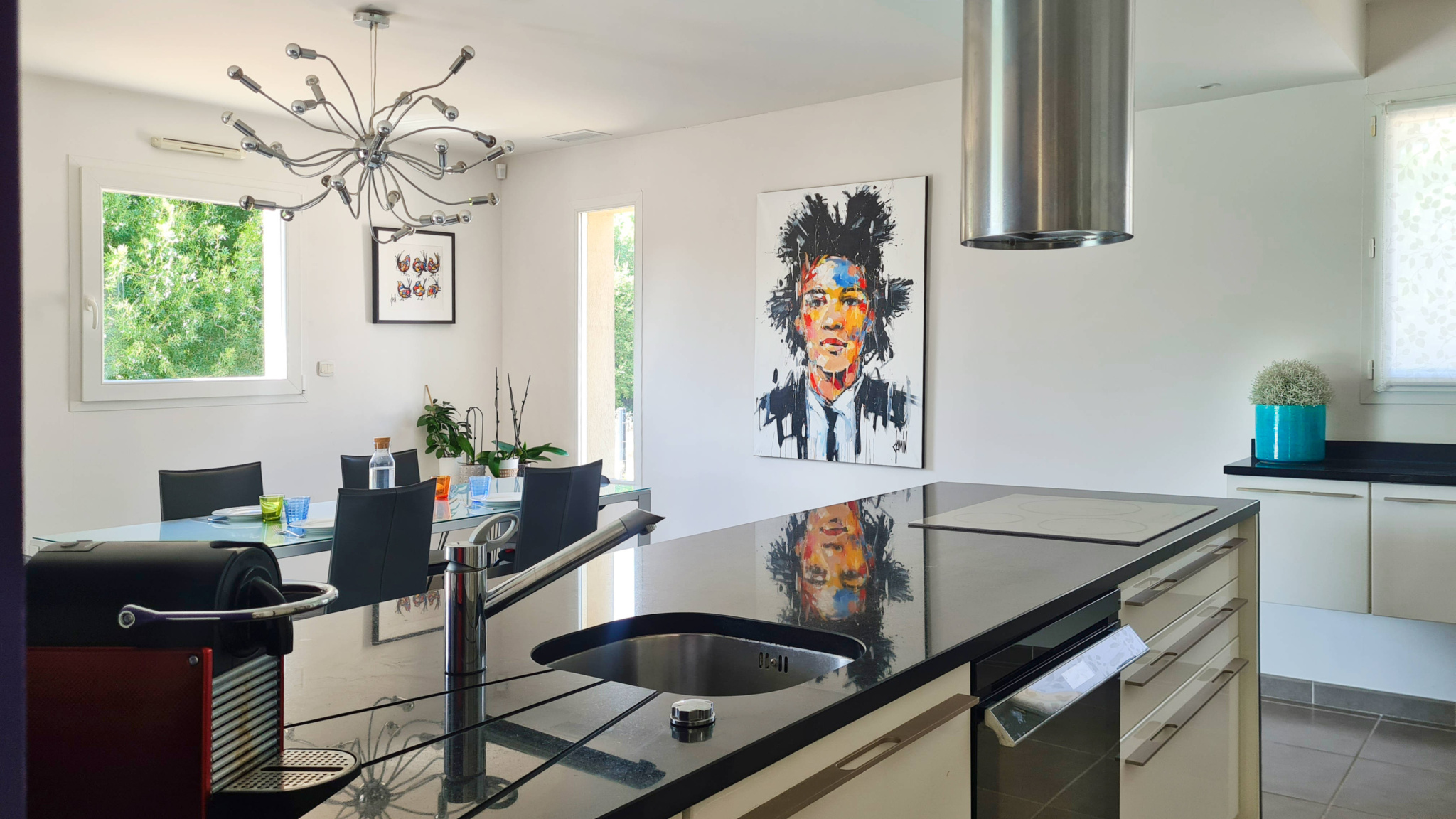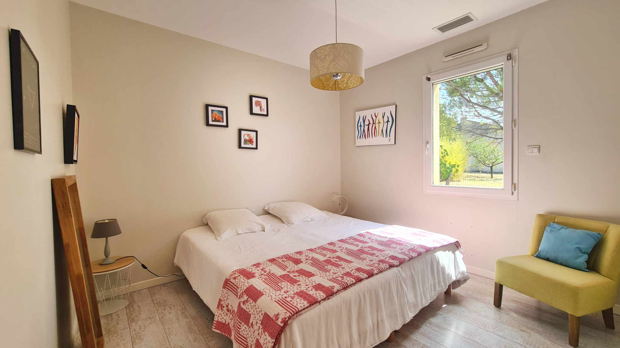 13 km from Uzès and in the immediate vicinity of a village with restaurants, grocery store and bakery (3 km), this contemporary single-story villa of approximately 160 m2 offers a privileged living environment, between countryside and vineyards, on an enclosed plot of 900 m2. The entrance is via a porch opening onto a hall which leads to a large living area consisting of a lounge with a wood-burning stove, a dining area and a fully equipped modern kitchen, complemented by a utility room/laundry room. This bright space opens onto a south-west-facing terrace and the pool area. At the front of the house, a spacious TV lounge with mezzanine/library benefits from two walls of bay windows, providing exceptional light. Next to the living room, the office opens directly onto a shaded terrace made of exotic wood. In the sleeping area, the master suite includes a fitted 'Schmidt' dressing room and a private bathroom. Two other bedrooms, each with a closet, share a bathroom with a bathtub and two sinks. This unit can be isolated from the rest of the house by a sliding door. Two wall-mounted toilets complete the living and sleeping areas. Outside, the 9 x 4 m salt-water swimming pool is equipped with an electric roller shutter and bordered by wide beaches with a summer lounge under a pergola with sliding sails. The property also has a double garage with automatic gate, ideal for vehicles, bicycles and various storage spaces. All modern comforts are present with reversible ducted air conditioning, underfloor heating, alarm system, water softener, electric roller shutters (some of which are solar), motorized gate and exterior lighting.
